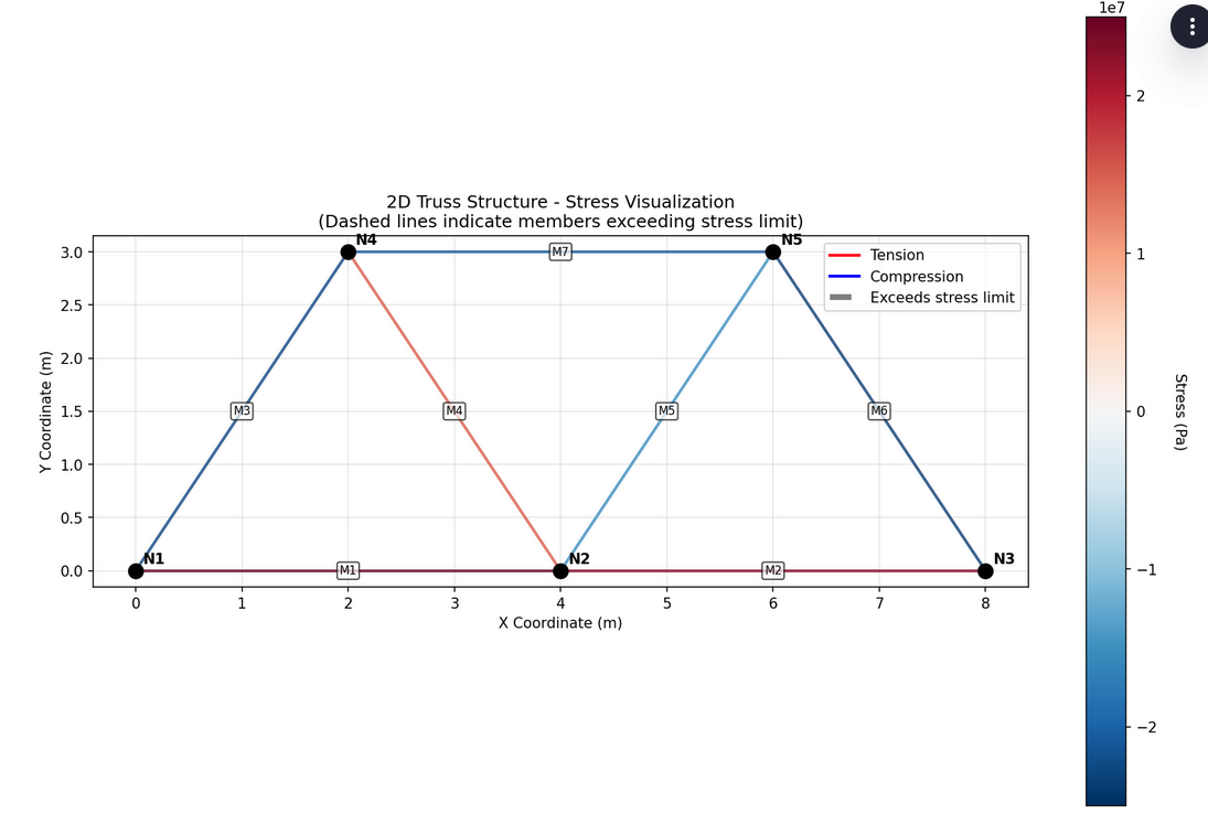 member_results = self._calculate_member_forces(nodes, members, areas_data, displacements, E)