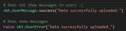 vkt.UserMessage.success(f"SUCCESS: {msg}")